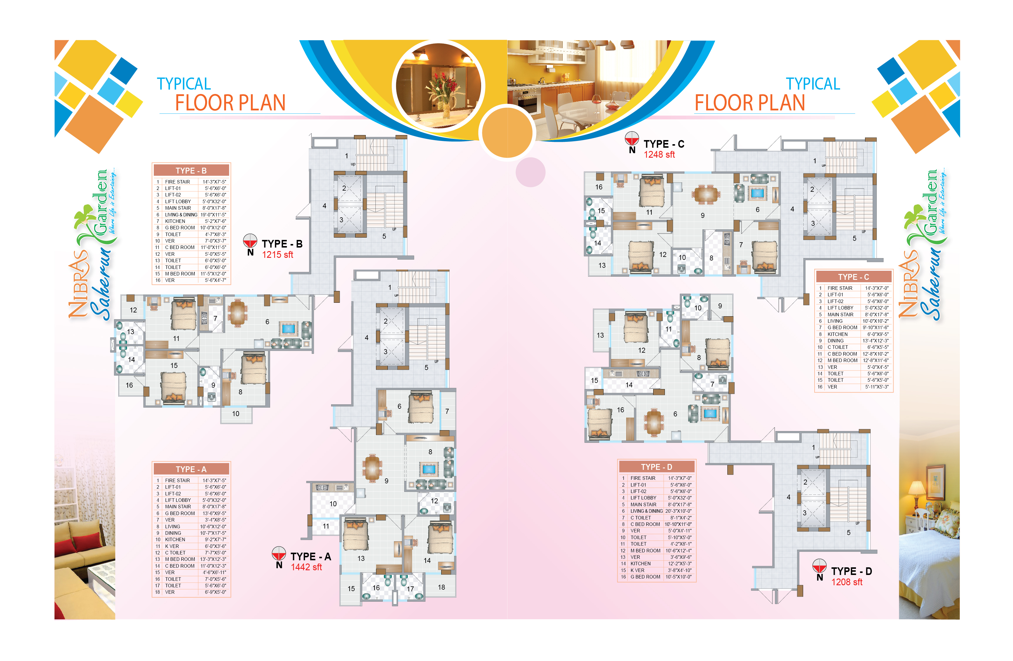 Type A-1442, B-1215, C-1248, D-1208, E-1106 Sft.