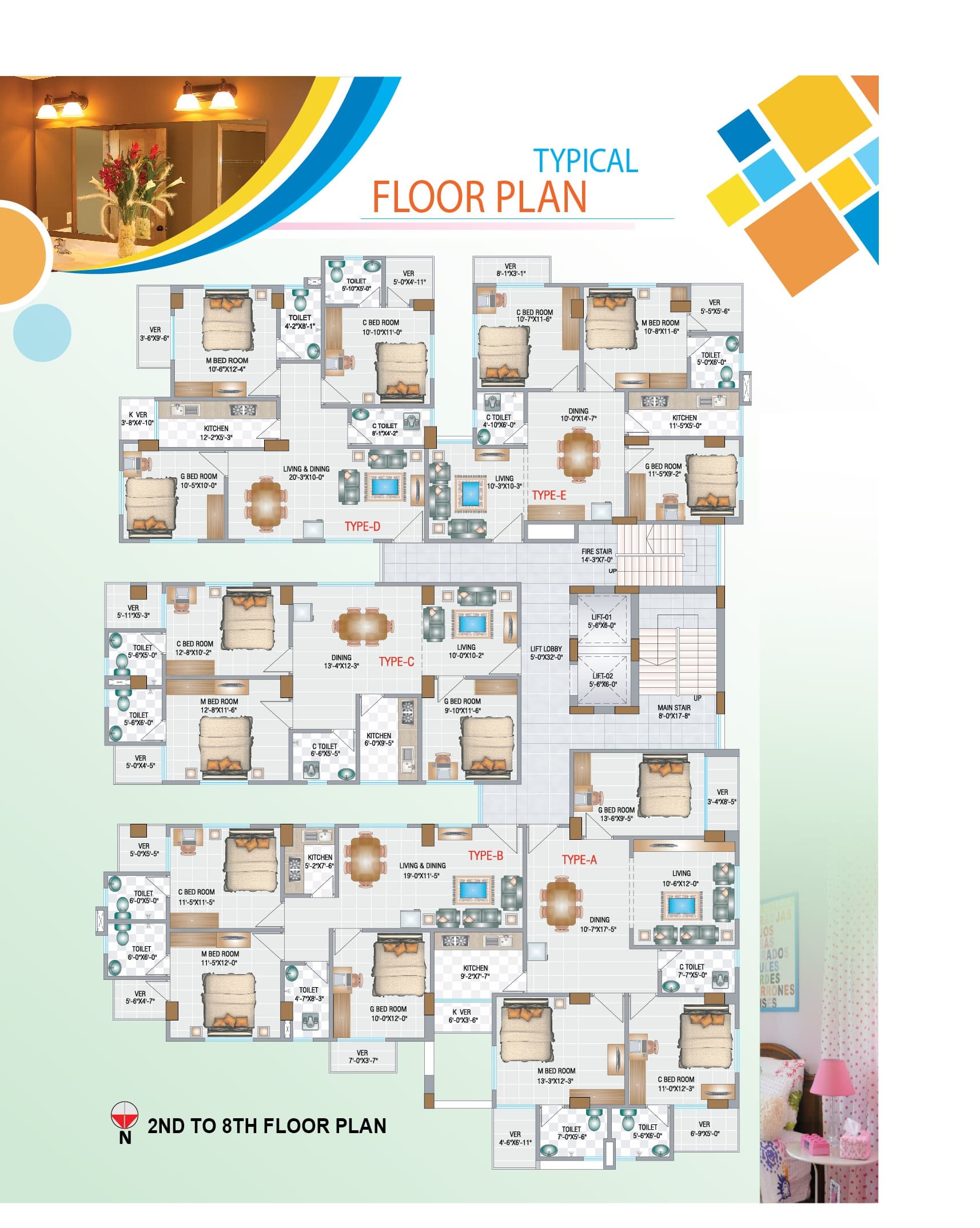 Type A-1442, B-1215, C-1248, D-1208, E-1106 Sft.